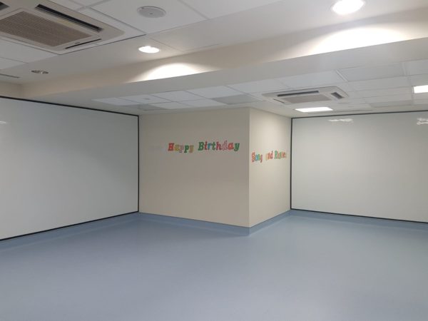 In another room, we have also managed to roll out a 5 metre long uncut magnetic whiteboard.