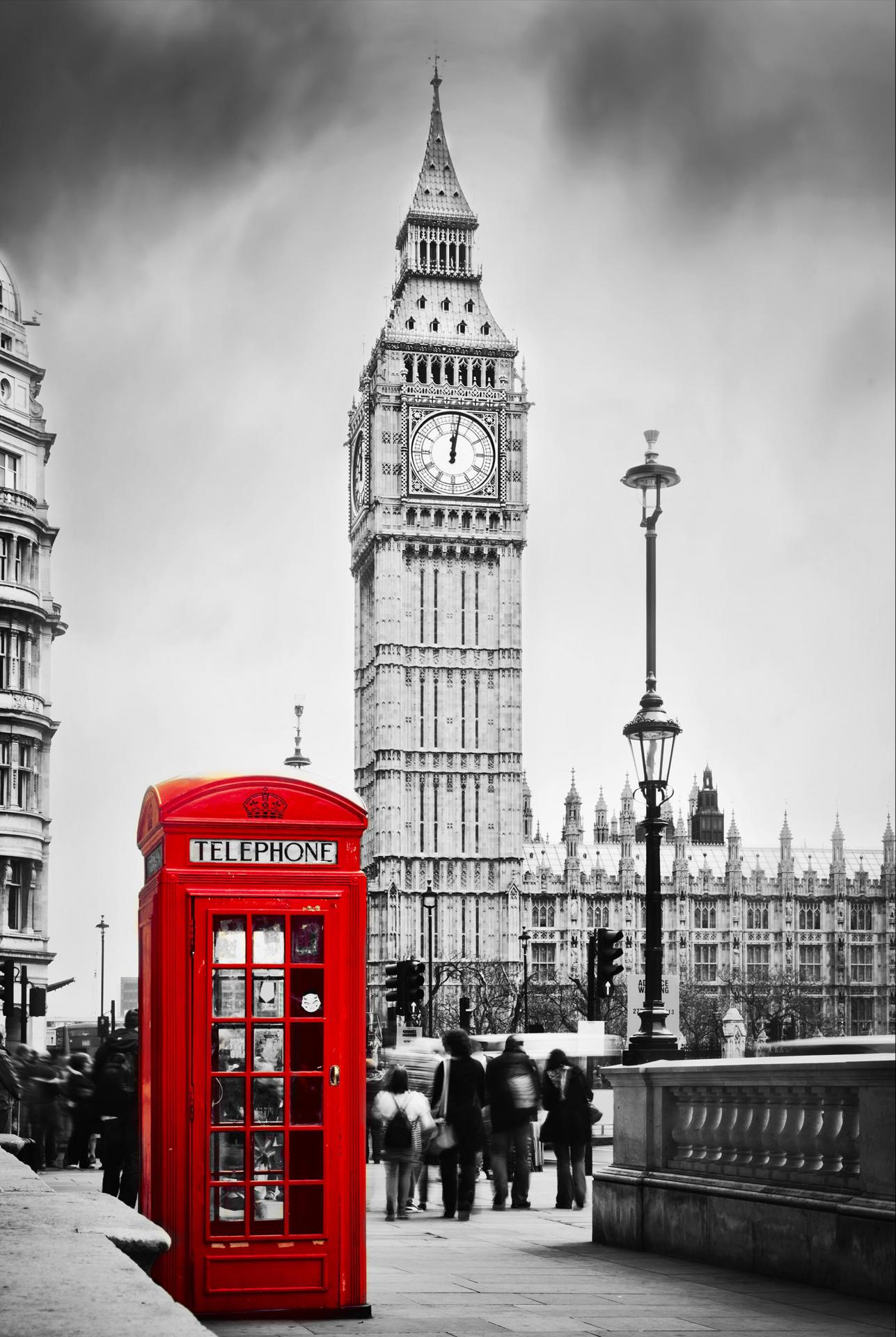 Red Telephone Booth And Big Ben In London, UK